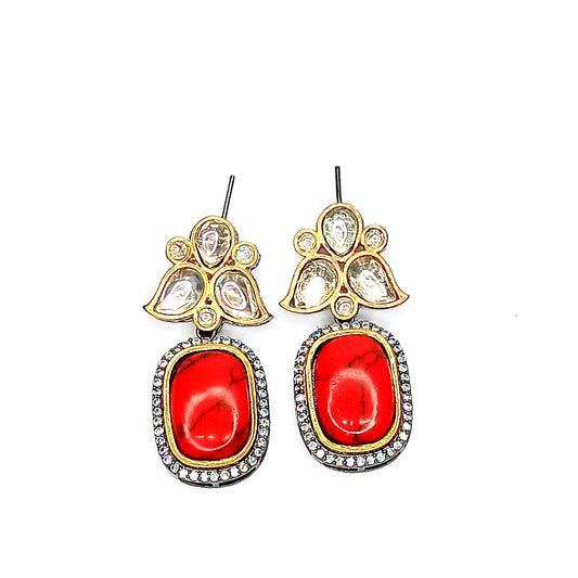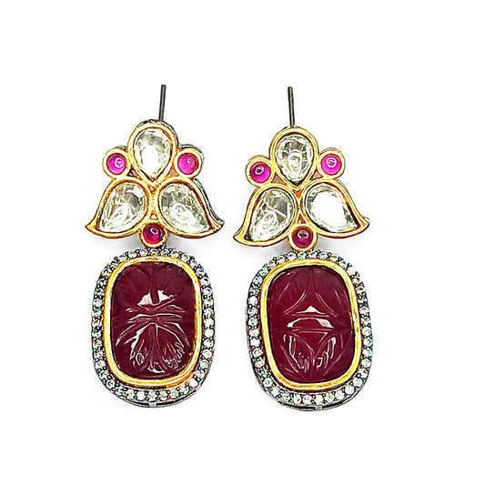 Velvet Red Kundan Drop Earrings