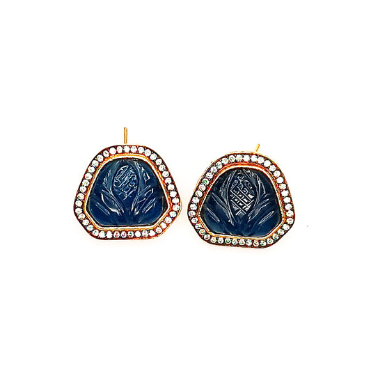 Gold Plated Black Kundan Stud Earrings