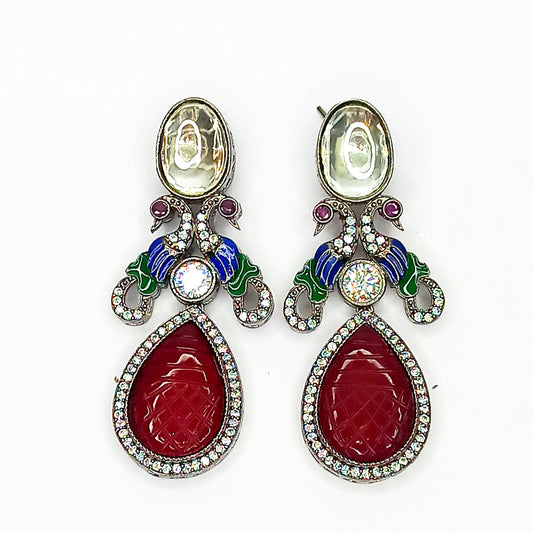 Regal Peacock Maroon & White Kundan Earrings