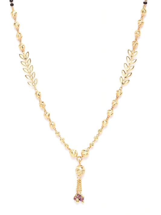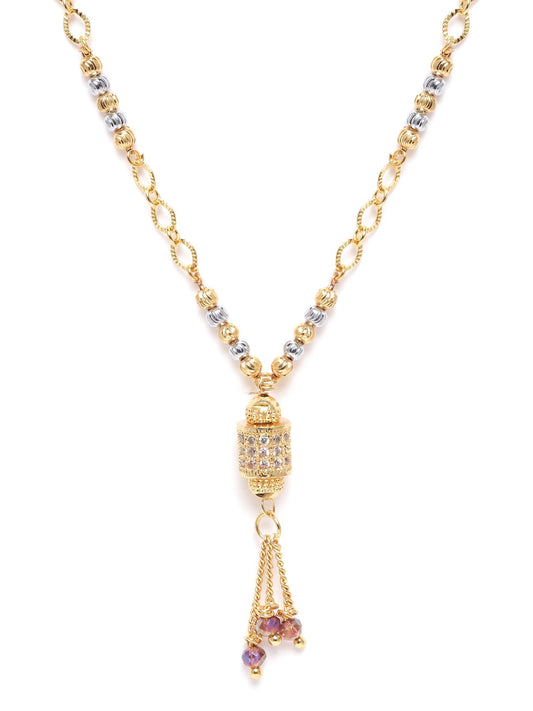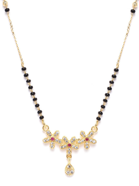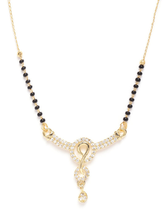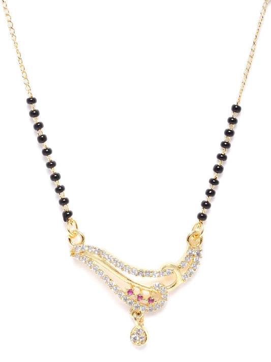 Gold-Plated AD Stone-Studded & Beaded Mangalsutra