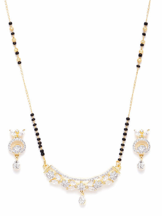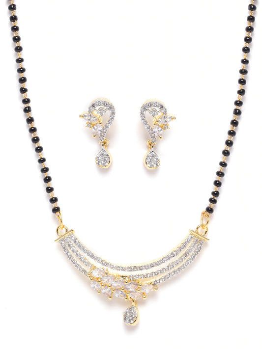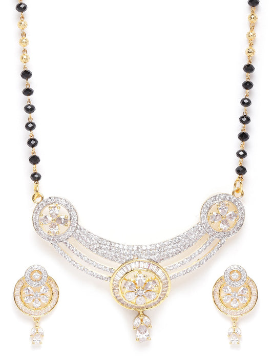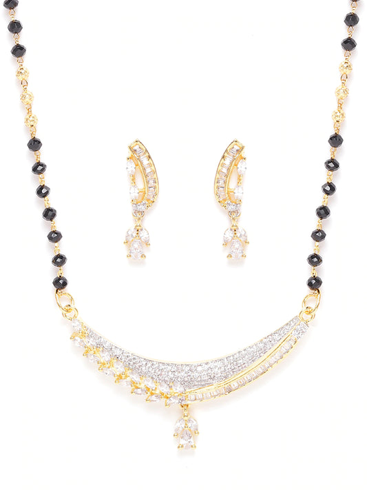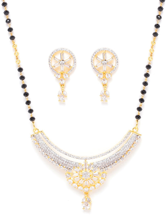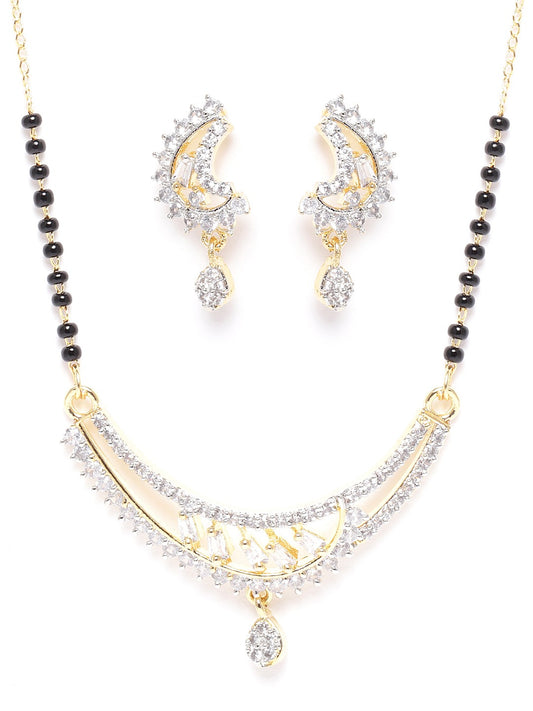 Black Gold-Plated AD-Studded Mangalsutra & Earrings Set