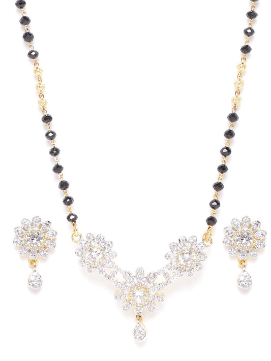Black Gold-Plated AD-Studded & Beaded Mangalsutra Set