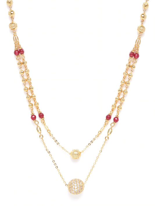 Maroon Gold-Plated AD Studded & Beaded Layered Mangalsutra