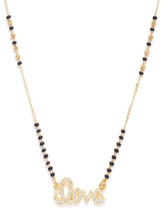 Black Gold-Plated AD Studded Beaded Mangalsutra