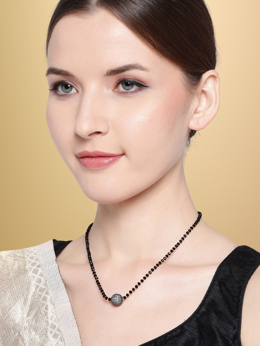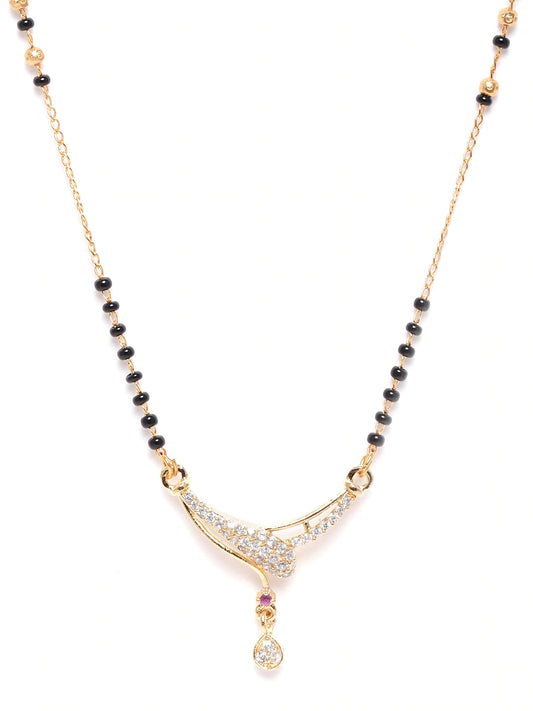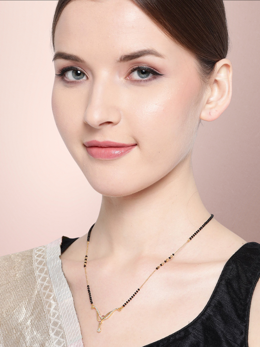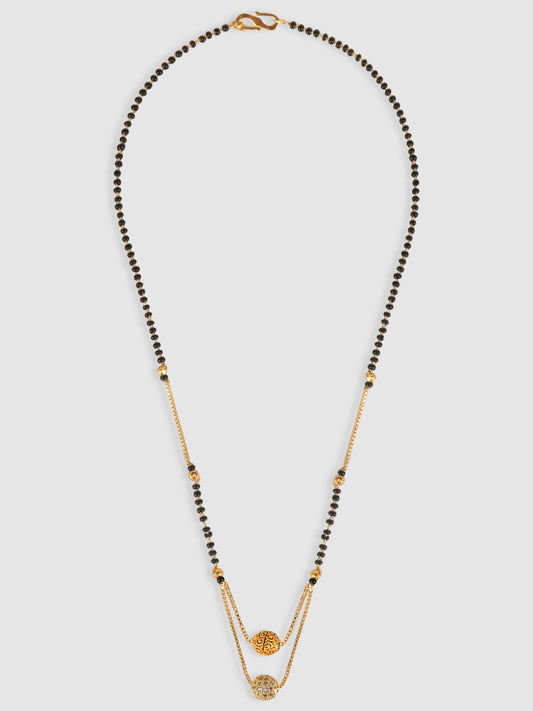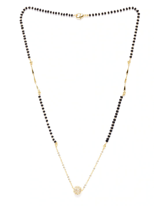 Black Gold-Plated Beaded & AD-Studded Mangalsutra
