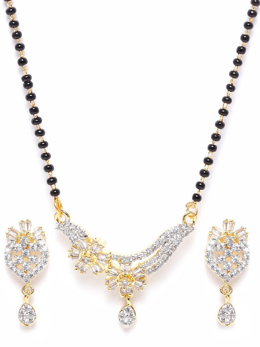 Black Gold-Plated AD-Studded Mangalsutra & Earrings Set