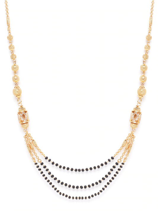 Black Gold-Plated AD-Studded & Beaded Layered Mangalsutra