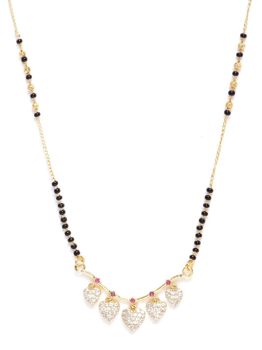 Jewels Gehna Black Gold-Plated Beaded & AD-Studded Heart-Shaped Mangalsutra