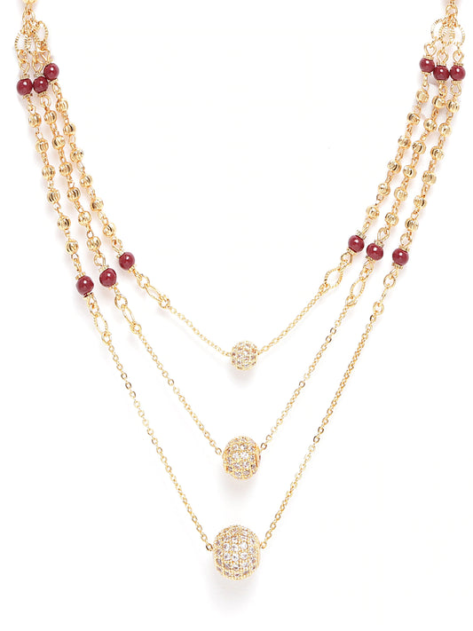 Maroon Gold-Plated AD-Studded Layered Mangalsutra
