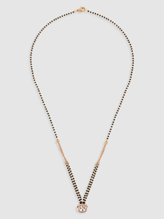 Black & Pink Gold-Plated Beaded & AD-Studded Mangalsutra