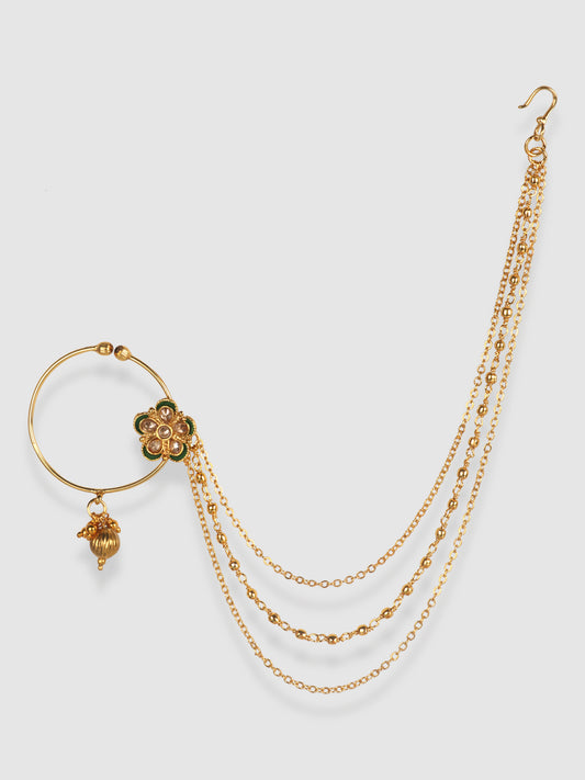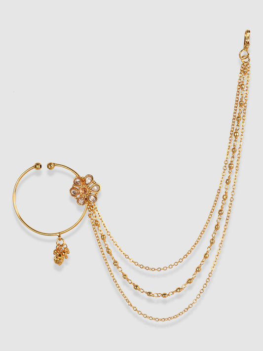 Gold-Plated Handcrafted Kundan Stone-Studded Chained Nose Ring