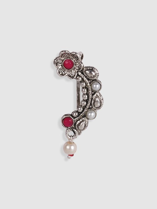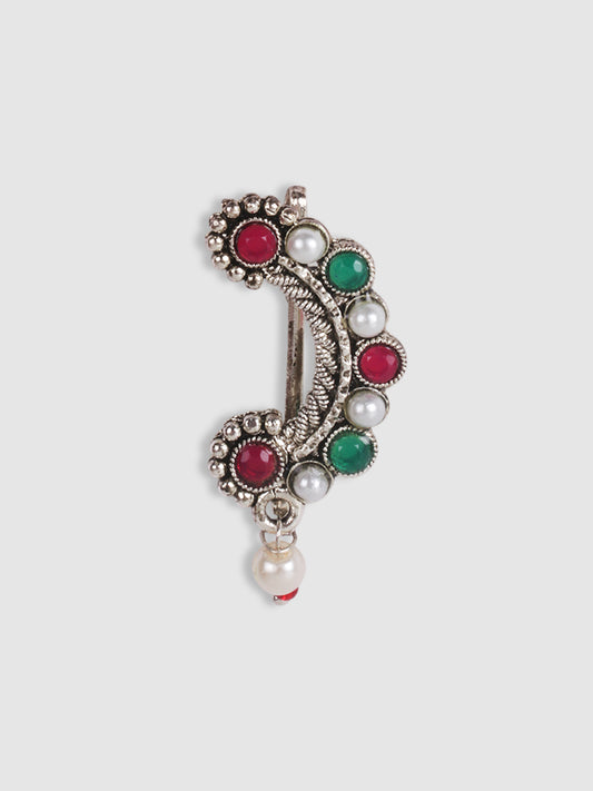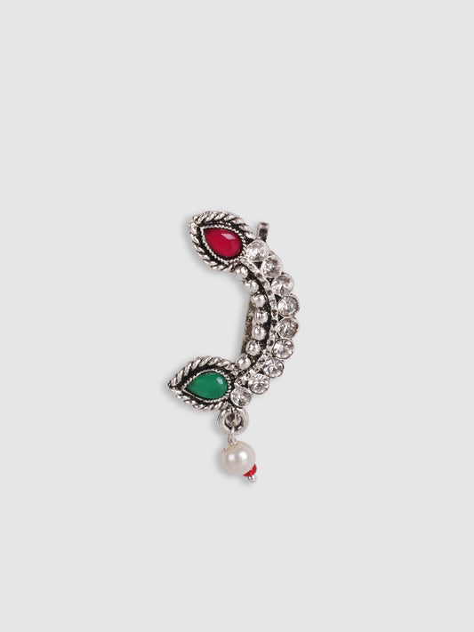 Oxidised Sliver-Plated & CZ Studded Maharashtrian Nose Pin