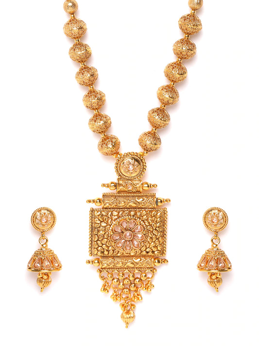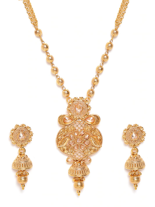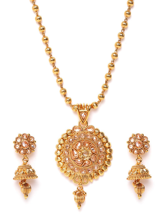 Gold-Plated Stone Studded Handcrafted Jewellery Set