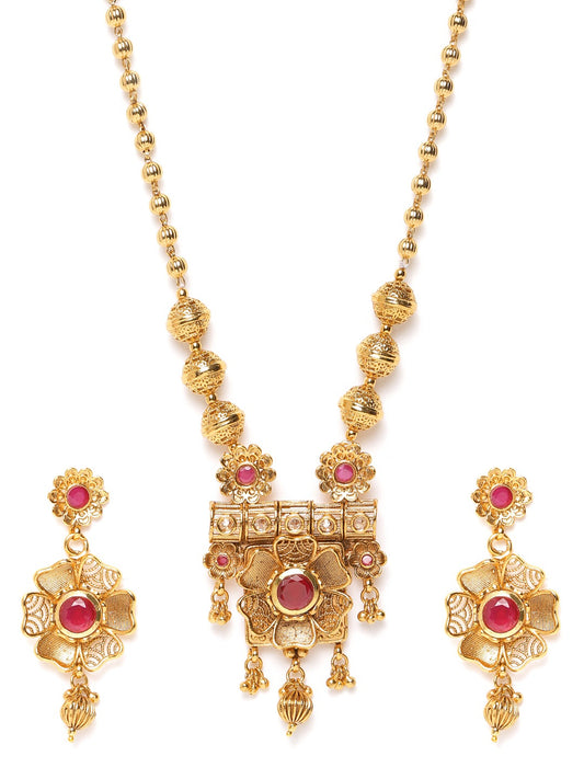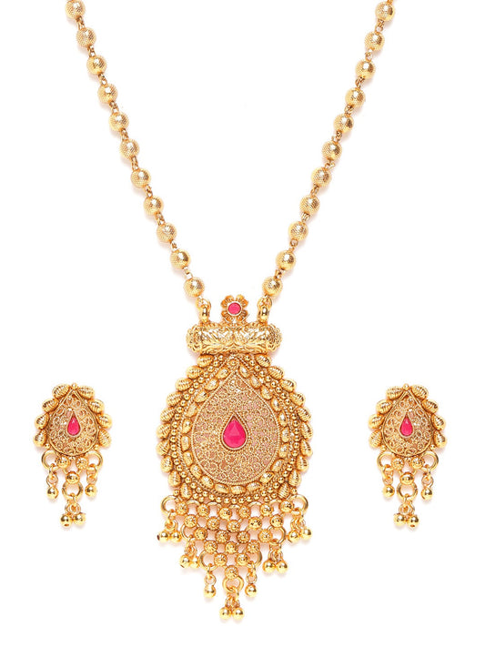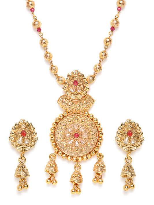 Jewels Gehna Pink Gold-Plated Stone Studded Handcrafted Jewellery Set