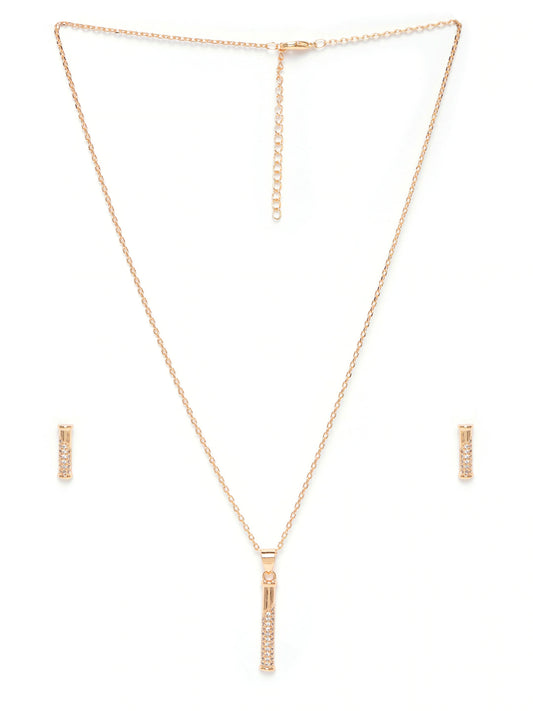 Rose Gold-Plated AD Studded Pendant with Chain & Earrings