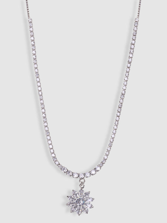 Woman Silver-Toned & White Silver-Plated Handcrafted Necklace
