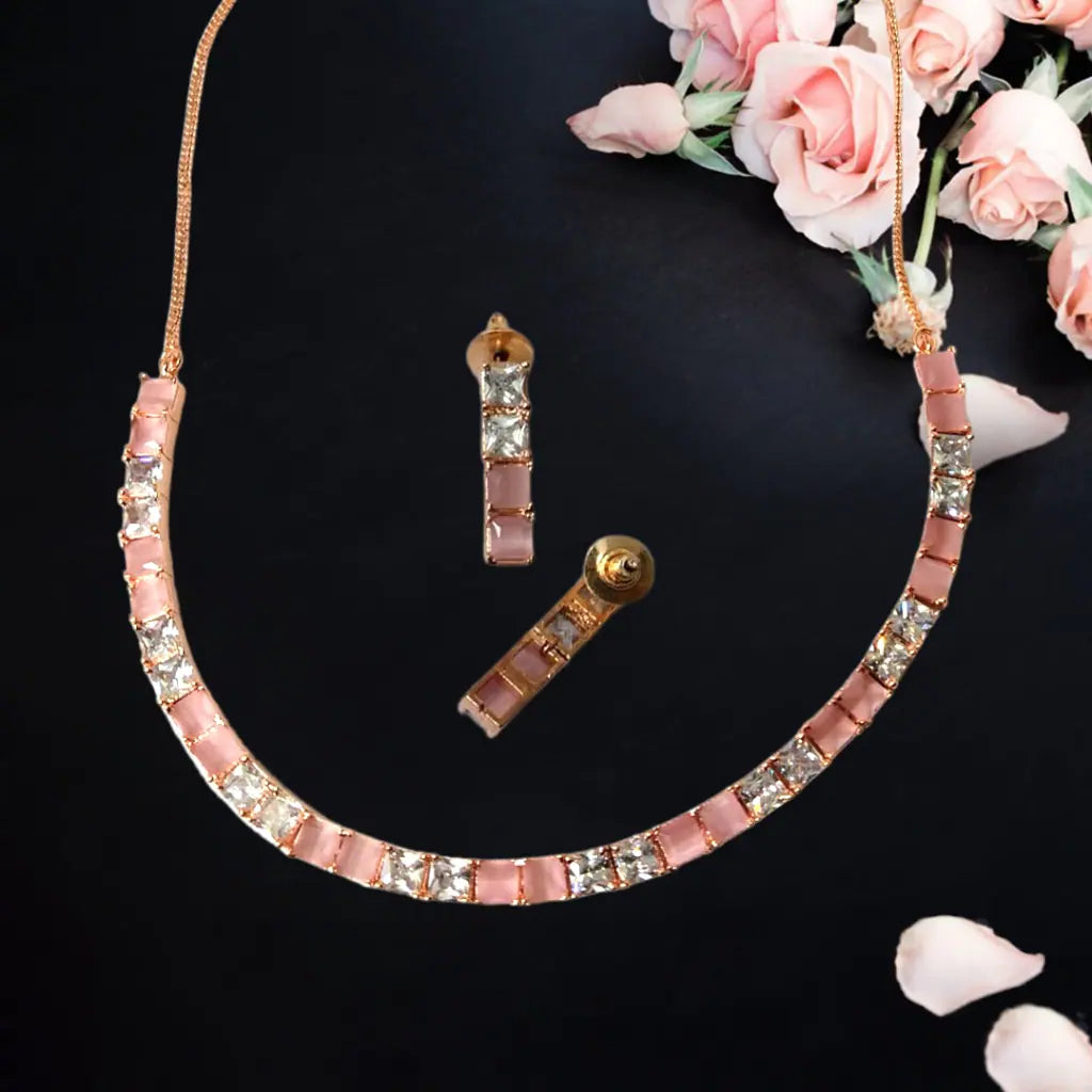 Pink Rose gold-plated AD-studded geometric handcrafted necklace, secured with an hook closure
